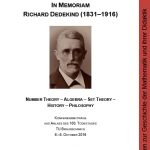 Im Jahr 2016 jährte sich der Todestag des Mathematikers Richard Dedekind zum 100. Mal. Das war der Anlass für eine Tagung „In Memoriam: Richard Dedekind (1831-1916)“, die vom 6. bis zum 8. Oktober 2016 an der Technischen Universität Braunschweig stattfand, und die neben den mathematischen auch die philosophischen und privaten Aspekte im Schaffen des großen Sohnes der Stadt Braunschweig zum Gegenstand hatte.